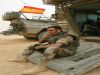 Ci-contre une photo d'un camion transportant un véhicule blindé de transport de troupe BMR-600 se dirigant vers la frontière du Koweït, après q'un convoi de 33 véhicules aient quitté les bases militaires situées près de Najaf et Diwaniya ce 27 avril 2004. En opposition à la politique sur l'Irak de son prédécesseur Mr Jose Maria Aznar, le nouveau Premier Ministre espagnole Mr Jose Luis Rodriguez a pris la décision de retirer ses troupes d'Irak le plus rapidement possible.