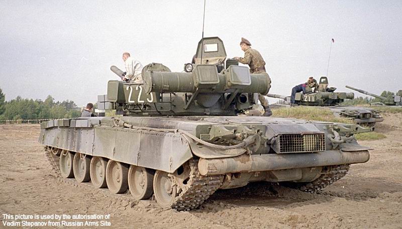 T-80 BV : C'est le modèle T-80B avec un nouveau système de blindage réactif, pour sa partie frontal le blindé est protégé contre tous les missiles anti-char , ce blindage protège également les lance-pots fumigènes